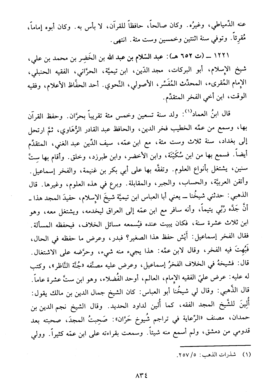 1221 - (ت 652 هـ): عبد السّلام بن عبد الله بن الخَضِر بن محمد بن علي، شيخ الإِسلام، أبو البركات، مجد الدِّين، ابن تيميَّة، الحرَّاني، الفقيه الحنبلي، الإِمام المُقرئ، المحدِّث المُفَسِّر، الأصولي، النَّحوي. أحد الحفَّاظ الأعلام، وفقيه الوقت، ابن أخي الفخر المتقدِّم.