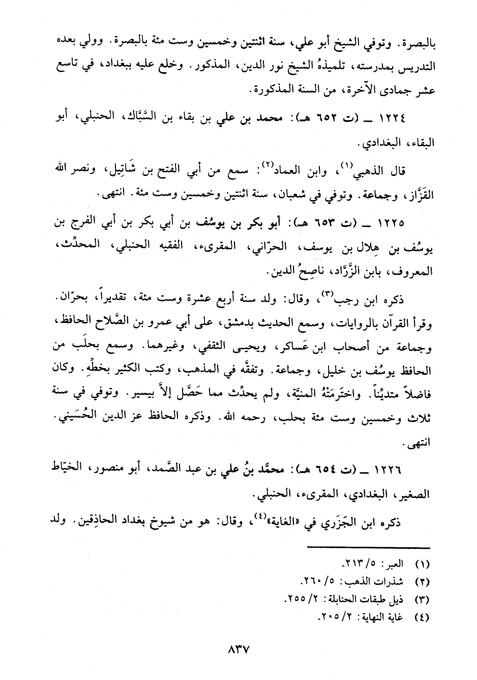 1224 - (ت 652 هـ): محمد بن علي بن بقاء بن السَّبَّاك، الحنبلي، أبو البقاء، البغدادي.