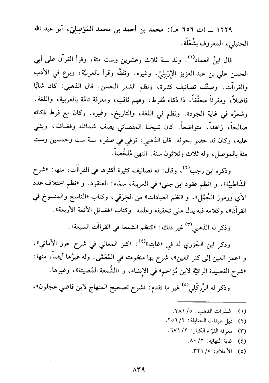 1229 - (ت 656 هـ): محمد بن أحمد بن محمد المَوْصِلِيّ، أبو عبد الله الحنبلي، المعروف بشُعْلَة.