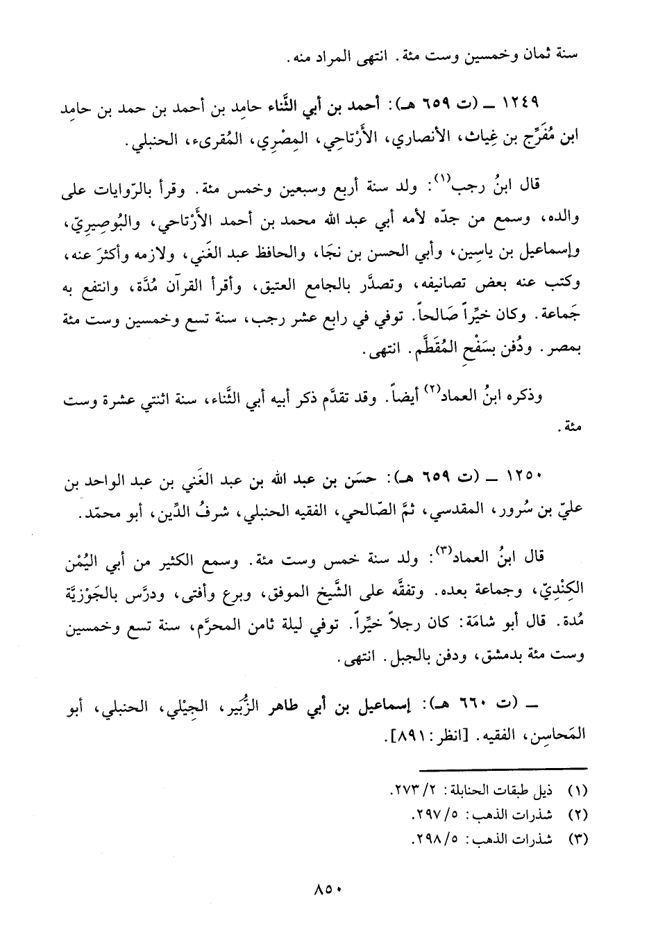 1249 - (ت 659 هـ): أحمد بن أبي الثَّناء حامِد بن أحمد بن حمد بن حامِد ابن مُفَرِّج بن غِياث، الأنصاري، الأَرْتاحِي، المِصْرِي، المُقرئ، الحنبلي.