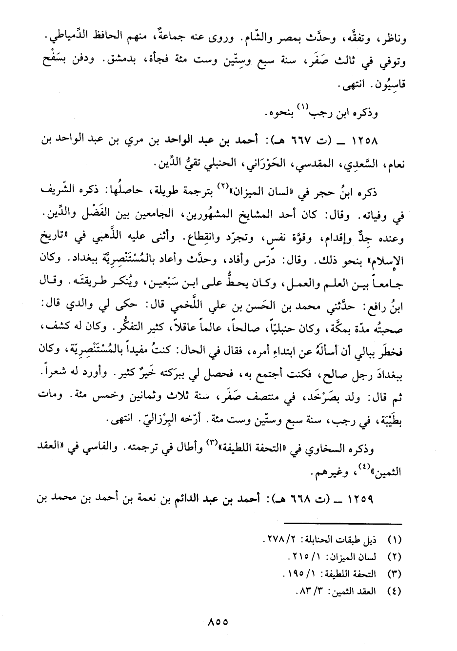 1258 - (ت 667 هـ): أحمد بن عبد الواحد بن مري بن عبد الواحد بن نعام، السَّعدِي، المقدسي، الحَوْرَاني، الحنبلي تقيُّ الدَّين.