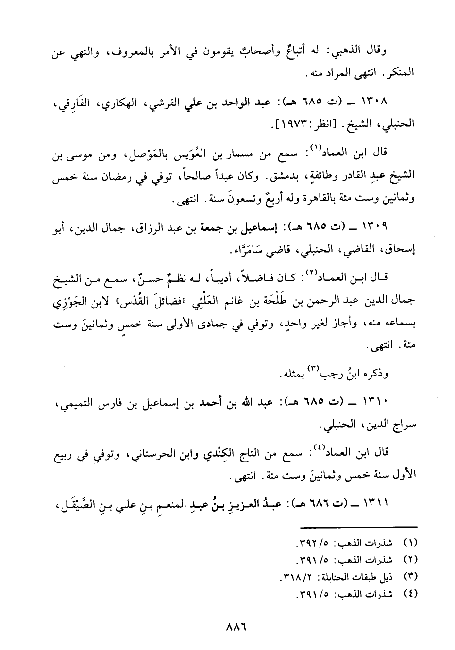 1310 - (ت 685 هـ): عبد الله بن أحمد بن إسماعيل بن فارس التميمي، سراج الدين، الحنبلي.