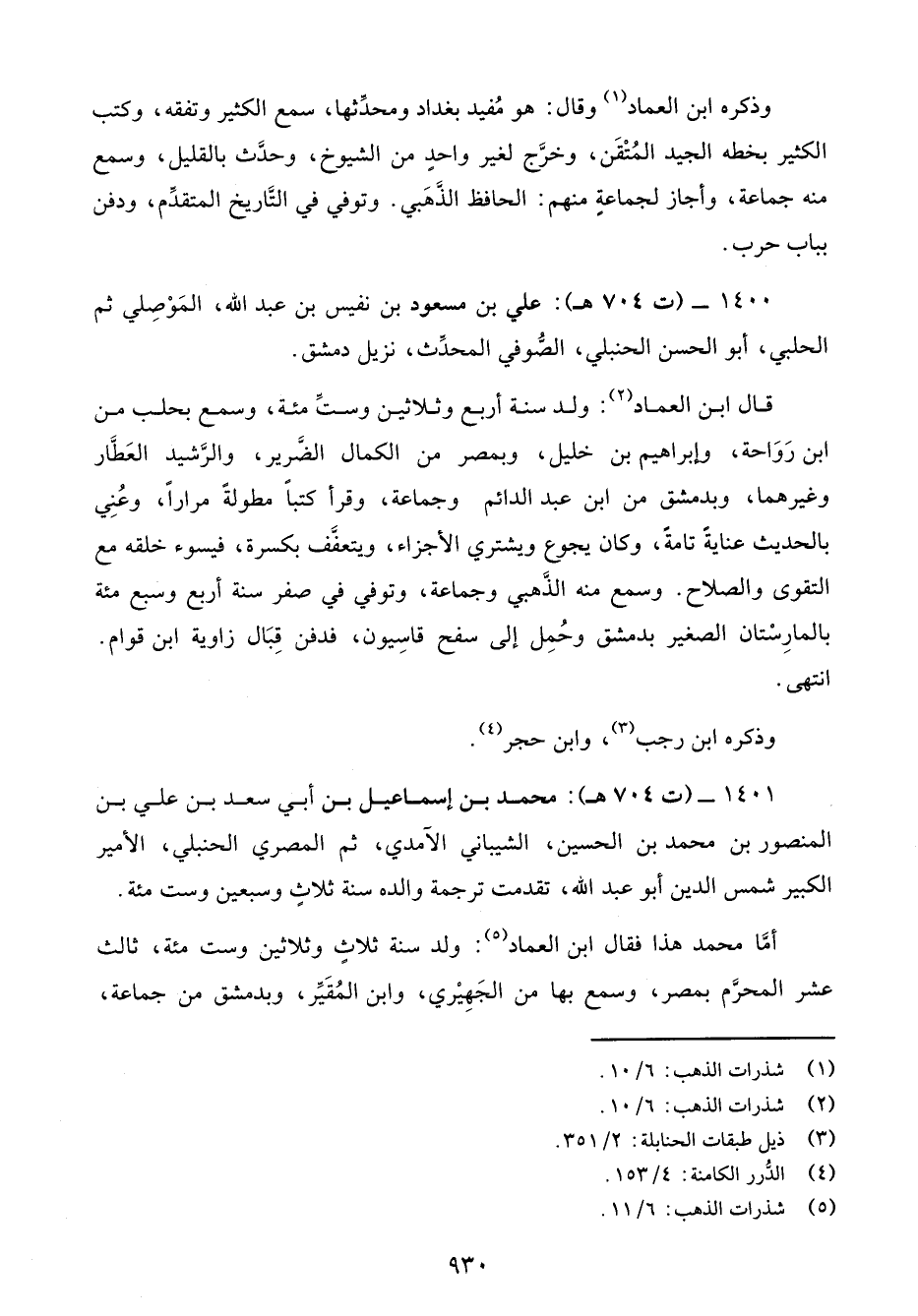 1400 - (ت 704 هـ): علي بن مسعود بن نفيس بن عبد الله، المَوْصِلي ثم الحلبي، أبو الحسن الحنبلي، الصُّوفي المحدَّث، نزيل دمشق.