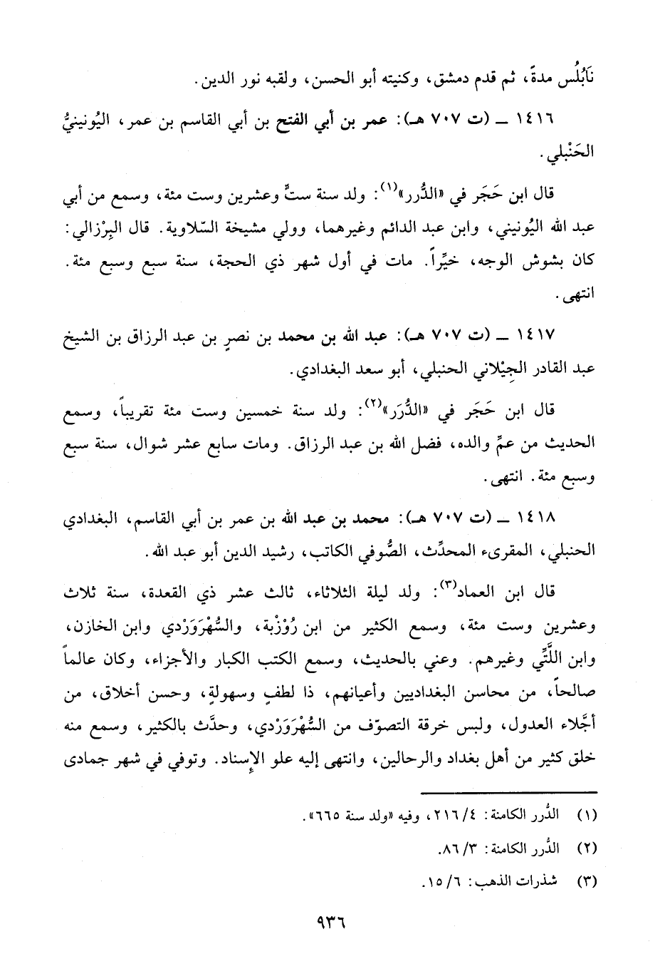 1416 - (ت 707 هـ): عمر بن أبي الفتح بن أبي القاسم بن عمر، اليُونينيُّ الحَنْبلي.