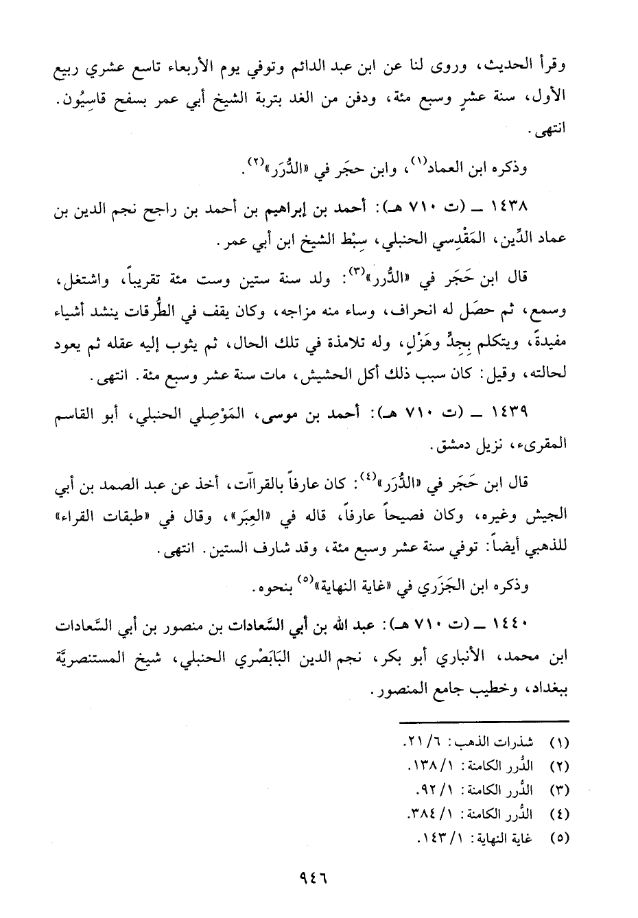 1438 - (ت 710 هـ): أحمد بن إبراهيم بن أحمد بن راجح نجم الدين بن عماد الدِّين، المَقْدِسي الحنبلي، سِبْط الشيخ ابن أبي عمر.