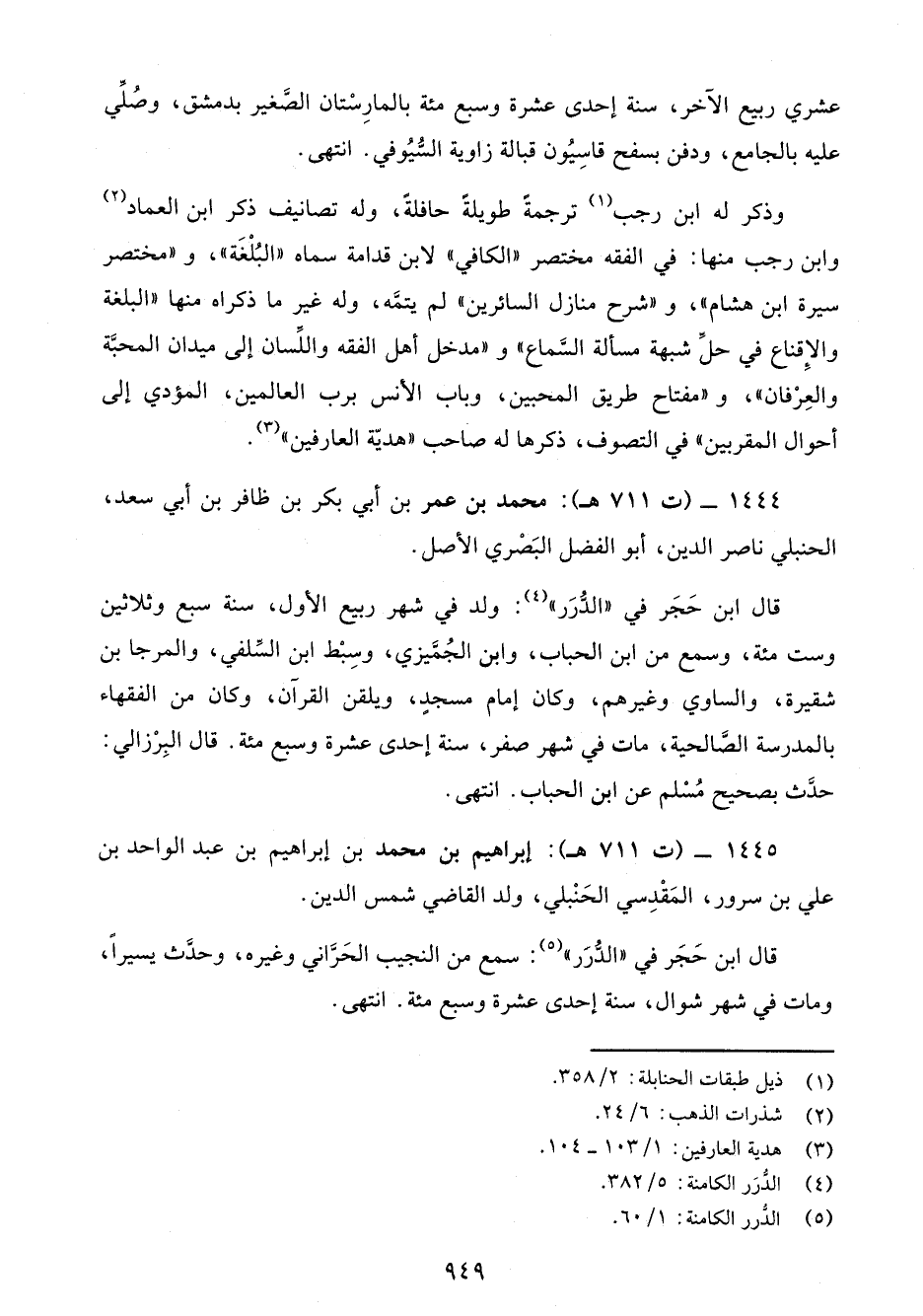 1445 - (ت 711 هـ): إبراهيم بن محمَّد بن إبراهيم بن عبد الواحد بن علي بن سرور، المَقْدِسي الحَنْبلي، ولد القاضي شمس الدين.