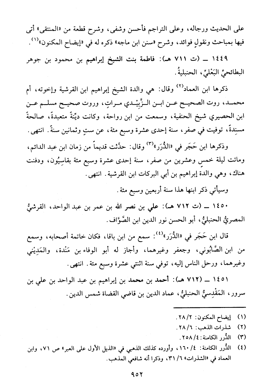 1451 - (712 هـ): أحمد بن محمد بن إبراهيم بن عبد الواحد بن علي بن سرور، المَقْدِسيُّ الحنبليُّ، عماد الدين بن قاضي القضاة شمس الدين.