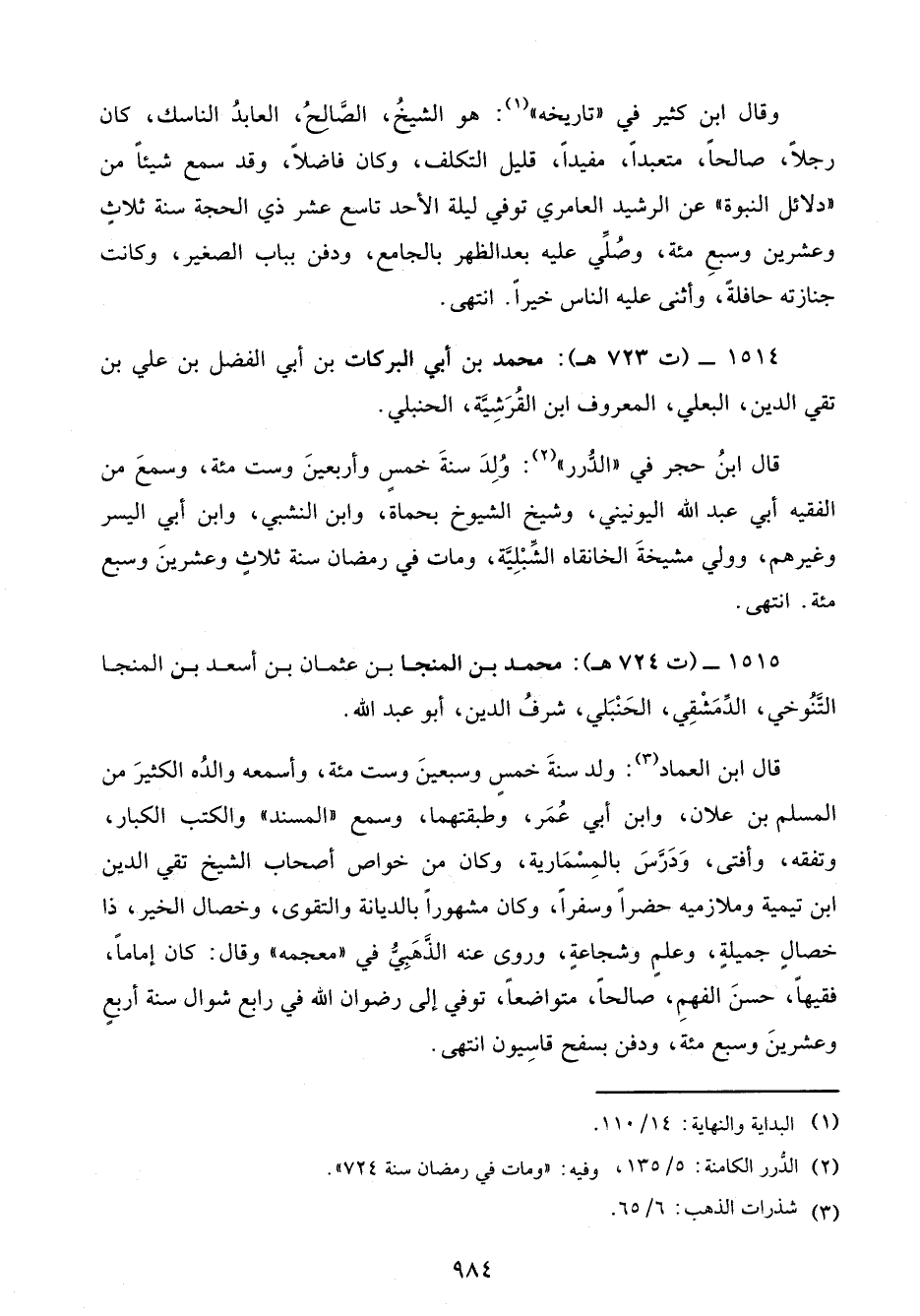 1514 - (ت 723 هـ): محمد بن أبي البركات بن أبي الفضل بن علي بن تقي الدين، البعلي، المعروف اين القُرَشِيَّة، الحنبلي.