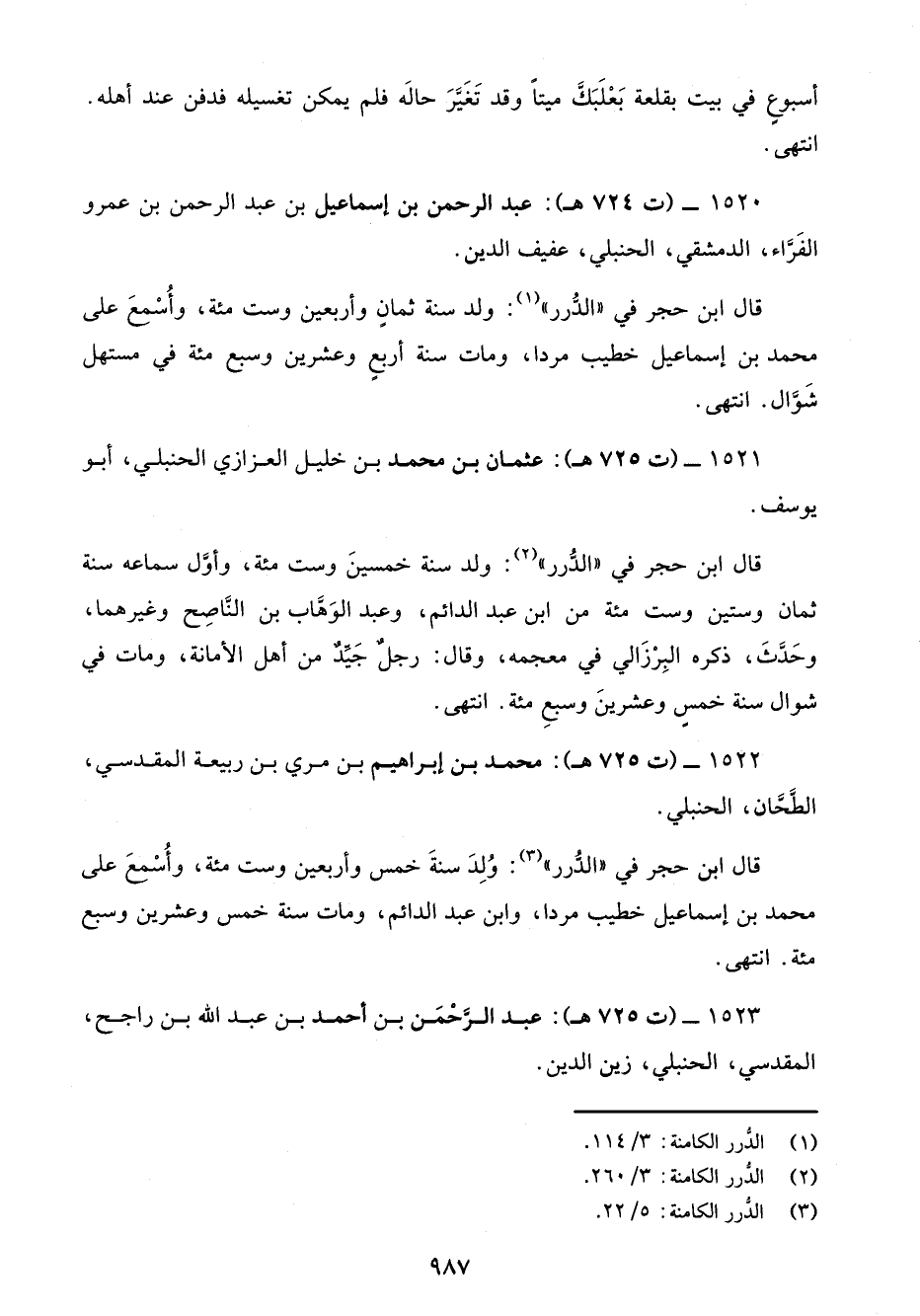 1520 - (ت 724 هـ): عبد الرحمن بن إسماعيل بن عبد الرحمن بن عمرو الفَرَّاء، الدمشقي، الحنبلي، عفيف الدين.