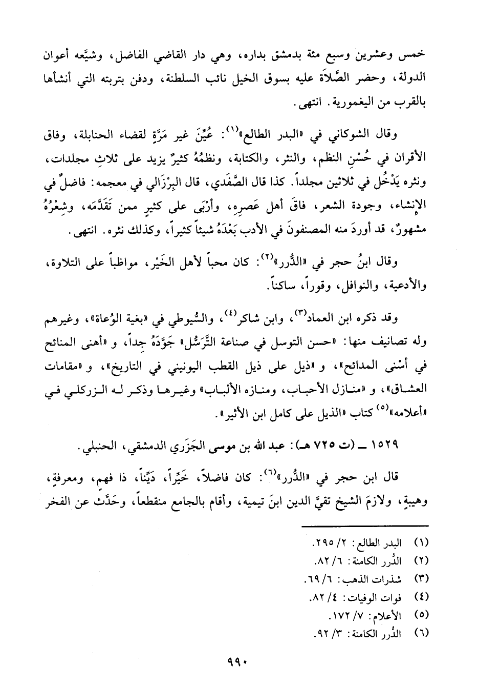 1529 - (ت 725 هـ): عبد الله بن موسى الجَزَري الدمشقي، الحنبلي.