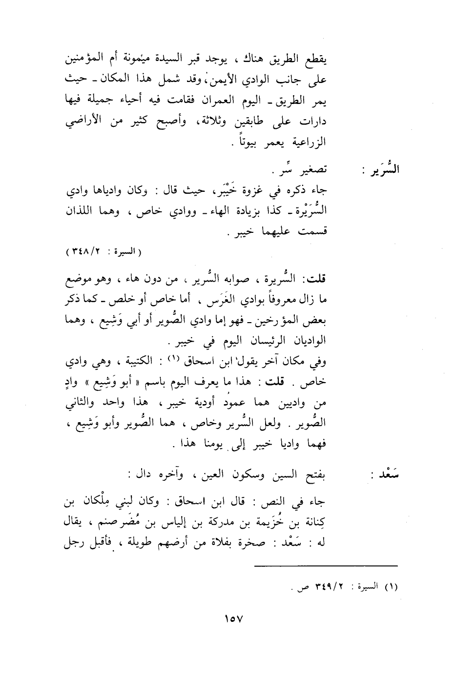 قُلْت: السُّرَيْرَةُ، صَوَابُهُ السُّرَيْرُ، مِنْ دُونِ هَاءٍ، وَهُوَ مَوْضِعٌ مَا زَالَ مَعْرُوفًا بِوَادِي الْغَرْسِ، أَمَّا خَاصٌ أَوْ خَلْصٌ - كَمَا ذَكَرَ بَعْضُ الْمُؤَرِّخِينَ - فَهُوَ إمَّا وَادِي الصُّوَيْرِ أَوْ أَبِي وُشَيْعٍ، وَهُمَا الْوَادِيَانِ الرَّئِيسَانِ الْيَوْمَ فِي خَيْبَرَ.