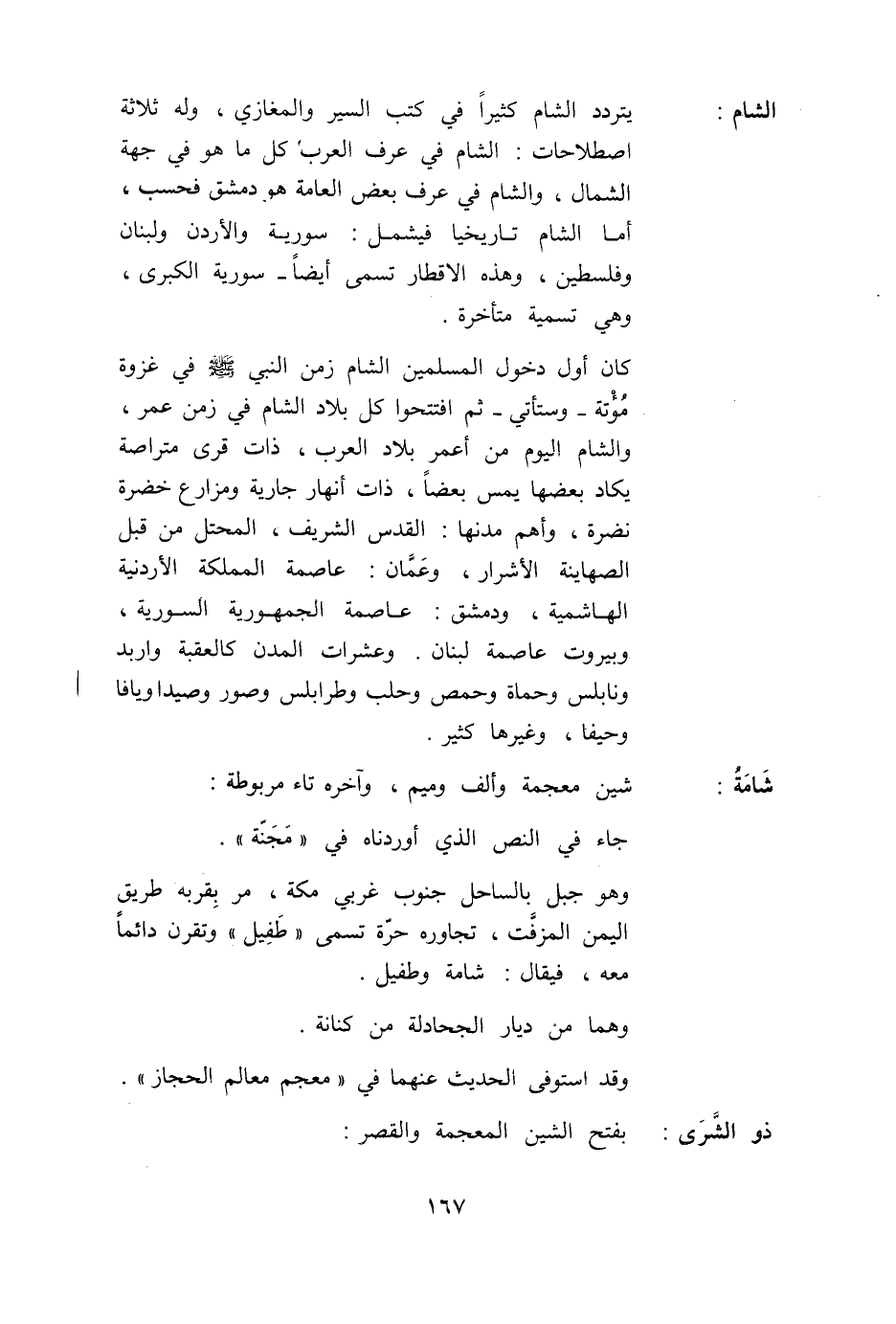 الشَّامُ يَتَرَدَّدُ الشَّامُ كَثِيرًا فِي كُتُبِ السِّيَرِ وَالْمَغَازِي، وَلَهُ ثَلَاثَةُ اصْطِلَاحَاتٍ: الشَّامُ فِي عُرْفِ الْعَرَبِ كُلُّ مَا هُوَ فِي جِهَةِ الشَّمَالِ، وَالشَّامُ فِي عُرْفِ بَعْضِ الْعَامَّةِ هُوَ دِمَشْقُ فَحَسْبُ، أَمَّا الشَّامُ تَارِيخِيًّا فَيَشْمَلُ: سُورِيَّةَ وَالْأُرْدُنَّ وَلُبْنَان وَفِلَسْطِينَ، وَهَذِهِ الْأَقْطَارُ تُسَمَّى أَيْضًا - سُورِيَّةَ الْكُبْرَى، وَهِيَ تَسْمِيَةٌ مُتَأَخِّرَةٌ.