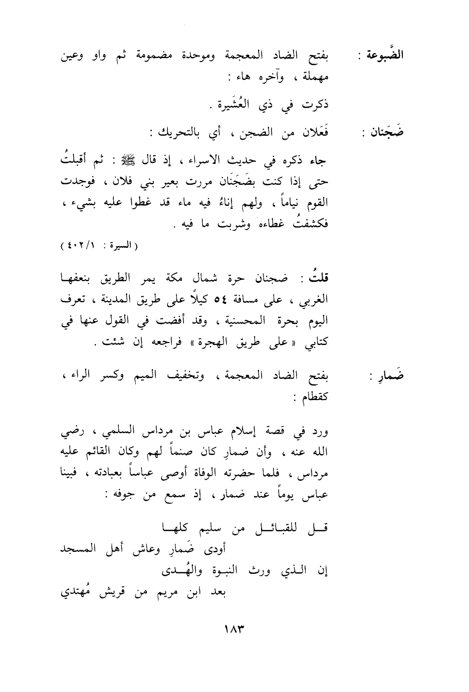 قُلْت: ضَجَنَانُ حَرَّةٌ شَمَالُ مَكَّةَ يَمُرُّ الطَّرِيقُ بِنَعْفِهَا الْغَرْبِيِّ، عَلَى مَسَافَةِ 54 كَيْلًا عَلَى طَرِيقِ الْمَدِينَةِ، تُعْرَفُ الْيَوْمَ بِحَرَّةِ المحسنية، وَقَدْ أَفَضْت فِي الْقَوْلِ عَنْهَا فِي كِتَابِي «عَلَى طَرِيقِ الْهِجْرَةِ» فَرَاجِعْهُ إنْ شِئْت.