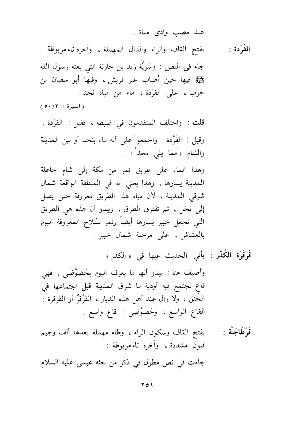 قُلْت: وَاخْتَلَفَ الْمُتَقَدِّمُونَ فِي ضَبْطِهِ، فَقِيلَ: الْقِرَدَةُ. وَقِيلَ: الْقَرْدَةُ. وَأَجْمِعُوا عَلَى أَنَّهُ مَاءٌ بِنَجْدٍ أَوْ بَيْنَ الْمَدِينَةِ وَالشَّامِ «مِمَّا يَلِي نَجْدًا». وَهَذَا الْمَاءُ عَلَى طَرِيقٍ تَمُرُّ مِنْ مَكَّةَ إلَى الشَّامِ جَاعِلَةً الْمَدِينَةَ يَسَارَهَا، وَهَذَا يَعْنِي أَنَّهُ فِي الْمِنْطَقَةِ الْوَاقِعَةِ شَمَالَ شَرْقِيِّ الْمَدِينَةِ، لِأَنَّ مِيَاهَ هَذَا الطَّرِيقِ مَعْرُوفَةٌ حَتَّى يَصِلَ إلَى نَخْلٍ، ثُمَّ تَفْتَرِقُ الطُّرُقُ، وَيَبْدُو أَنَّ هَذِهِ هِيَ الطَّرِيقُ الَّتِي تَجْعَلُ خَيْبَرَ يَسَارَهَا أَيْضًا وَتَمُرُّ بِسَلَاحٍ الْمَعْرُوفَة الْيَوْم بِالْعِشَاشِ، عَلَى مَرْحَلَةٍ شَمَالَ خَيْبَرَ.