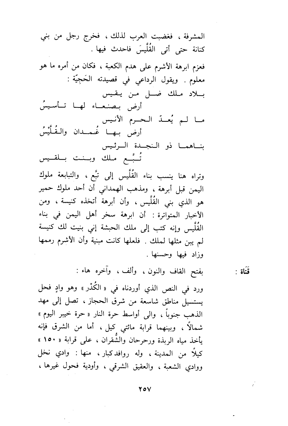 وَتَرَاهُ هُنَا يَنْسِبُ بِنَاءَ الْقُلَّيْسِ إلَى تُبَّعٍ، وَالتَّبَابِعَةُ مُلُوكُ الْيَمَنِ قَبْلَ أَبْرَهَةَ، وَمَذْهَبُ الْهَمْدَانِيّ أَنَّ أَحَدَ مُلُوكِ حِمْيَرَ هُوَ الَّذِي بَنَى الْقُلَّيْسَ، وَأَنَّ أَبْرَهَةَ اتَّخَذَهُ كَنِيسَةً، وَمِنْ الْأَخْبَارِ الْمُتَوَاتِرَةِ: أَنَّ أَبْرَهَةَ سَخَّرَ أَهْلَ الْيَمَنِ فِي بِنَاءِ الْقُلَّيْسِ وَأَنَّهُ كَتَبَ إلَى مَلِكِ الْحَبَشَةِ إنِّي بَنَيْت لَك كَنِيسَةً لَمْ يُبْنَ مِثْلُهَا لِمَلِكِ. فَلَعَلَّهَا كَانَتْ مَبْنِيَّةً وَأَنَّ الْأَشْرَمَ رَمَّمَهَا وَزَادَ فِيهَا وَحَسَّنَهَا.