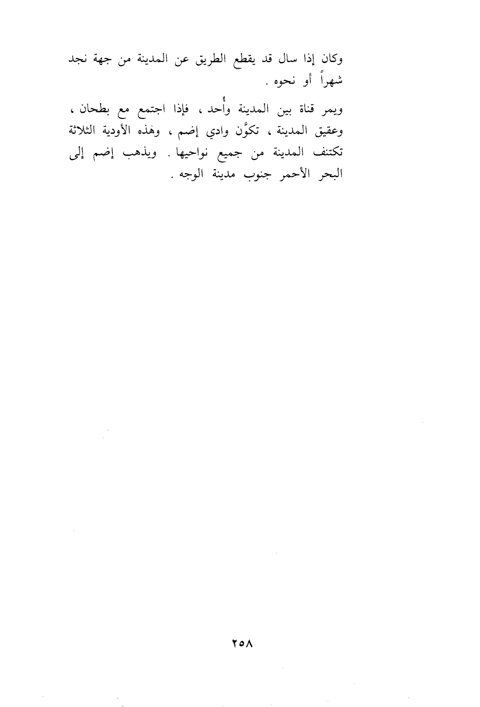 وَيَمُرُّ قَنَاةُ بَيْنَ الْمَدِينَةِ وَأُحُدٍ، فَإِذَا اجْتَمَعَ مَعَ بَطْحَانَ، وَعَقِيقِ الْمَدِينَةِ، تَكَوَّنَ وَادِي إضَمٍ، وَهَذِهِ الْأَوْدِيَةُ الثَّلَاثَةُ تَكْتَنِفُ الْمَدِينَةَ مِنْ جَمِيعِ نَوَاحِيهَا. وَيَذْهَبُ إضَمٌ إلَى الْبَحْرِ الْأَحْمَرِ جَنُوبَ مَدِينَةِ الْوَجْهِ.