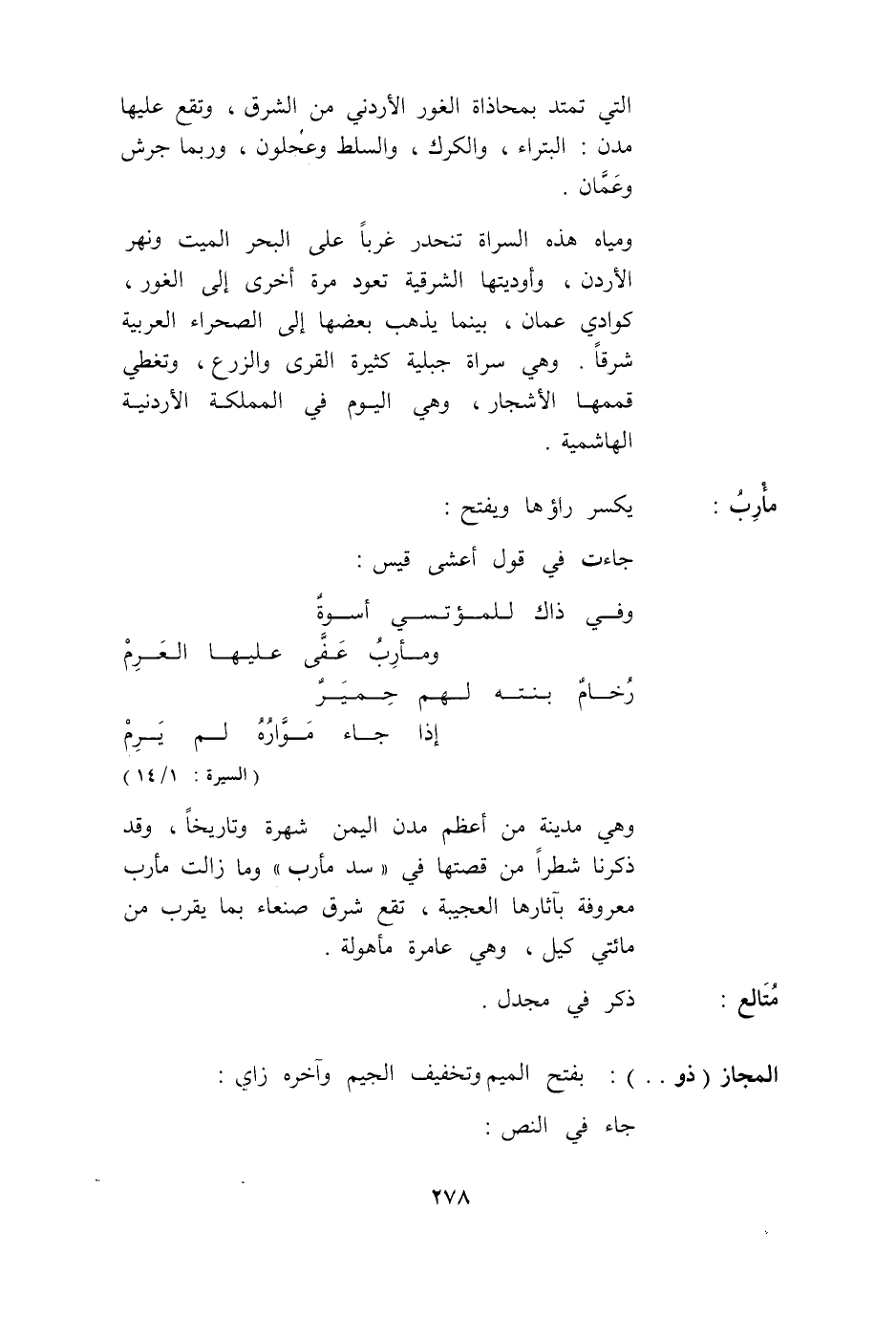 مَأْرِبٌ يُكْسَرُ رَاؤُهَا وَيُفْتَحُ: جَاءَتْ فِي قَوْلِ أَعْشَى قَيْسٍ: