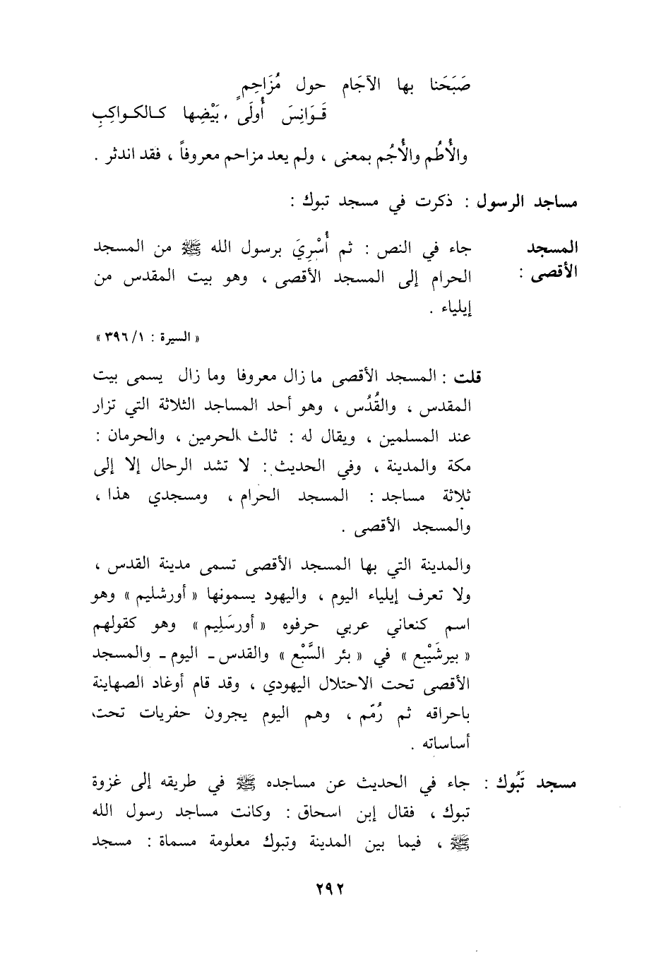 قُلْت: الْمَسْجِدُ الْأَقْصَى مَا زَالَ مَعْرُوفًا وَمَا زَالَ يُسَمَّى بَيْتَ الْمَقْدِسِ، وَالْقُدْسُ، وَهُوَ أَحَدُ الْمَسَاجِدِ الثَّلَاثَةِ الَّتِي تُزَارُ عِنْدَ الْمُسْلِمِينَ، وَيُقَالُ لَهُ: ثَالِثُ الْحَرَمَيْنِ، وَالْحَرَمَانِ: مَكَّةُ وَالْمَدِينَةُ، وَفِي الْحَدِيثِ: لَا تُشَدُّ الرِّحَالُ إلَّا إلَى ثَلَاثَةِ مَسَاجِدَ: الْمَسْجِدِ الْحَرَامِ، وَمَسْجِدِي هَذَا، وَالْمَسْجِدِ الْأَقْصَى.
