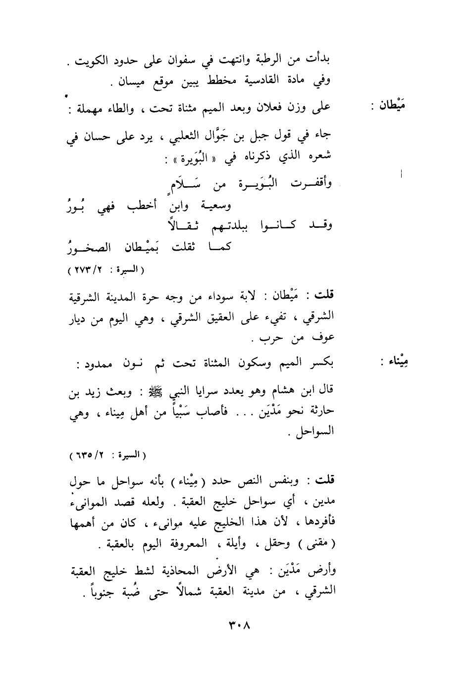 قَالَ ابْنُ هِشَامٍ وَهُوَ يُعَدِّدُ سَرَايَا النَّبِيِّ صَلَّى اللَّهُ عَلَيْهِ وَسَلَّمَ: وَبَعَثَ زَيْدَ بْنَ حَارِثَةَ نَحْوَ مَدْيَن. . . فَأَصَابَ سَبْيًا مِنْ أَهْلِ مِينَاءٍ، وَهِيَ السَّوَاحِلُ.