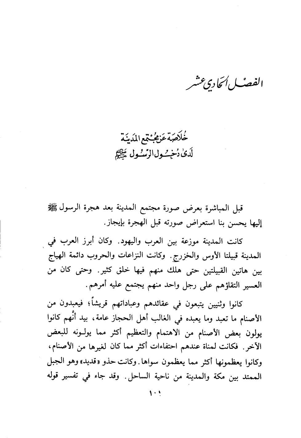 الفصل الحادي عشر خلاصة عن مجتمع المدينة لدى دخول الرسول صلى الله عليه وسلم