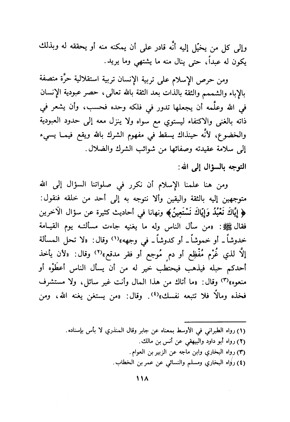 (إياك نعبد وإياك نستعين) ونهاا في أحاديث كثيرة عن سؤال الآخرين فقال صلى الله عليه وسلم: