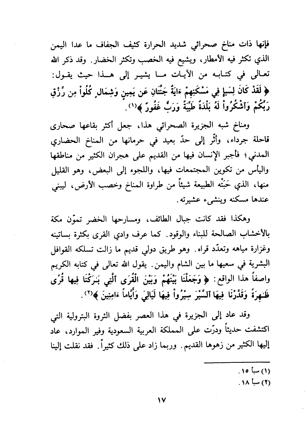 17…فإنها ذات مناخ صحرائي شديد الحرارة كثيف الجفاف ما عدا اليمن الذي تكثر فيه الأمطار، ويشيع فيه الخصب وتكثر الخضار.