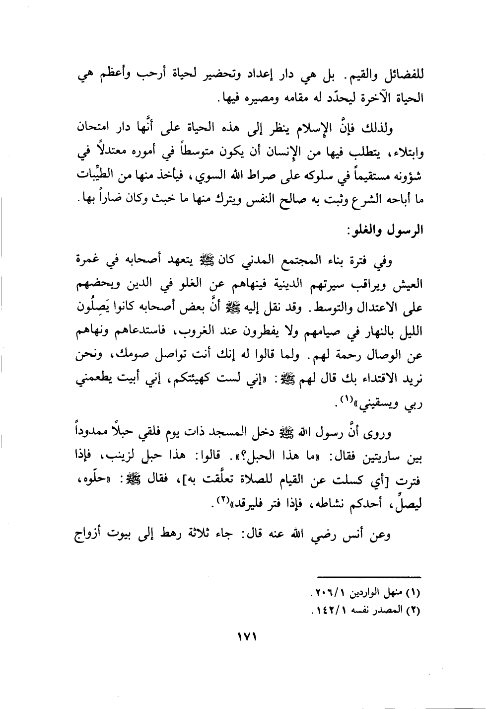 ولذلك فإن الإسلام ينظر إلى هذه الحياة على أنها دار امتحان وابتلاء، يتطلب فيها من الإنسان أن يكون متوسطاً في أموره معتدلاً في شؤونه مستقيماً في سلوكه على صراط الله السوي، فيأخذ منها من الطيبات ما أباحه الشرع وثبت به صالح النفس ويترك منها ما خبث وكان ضاراً بها.
