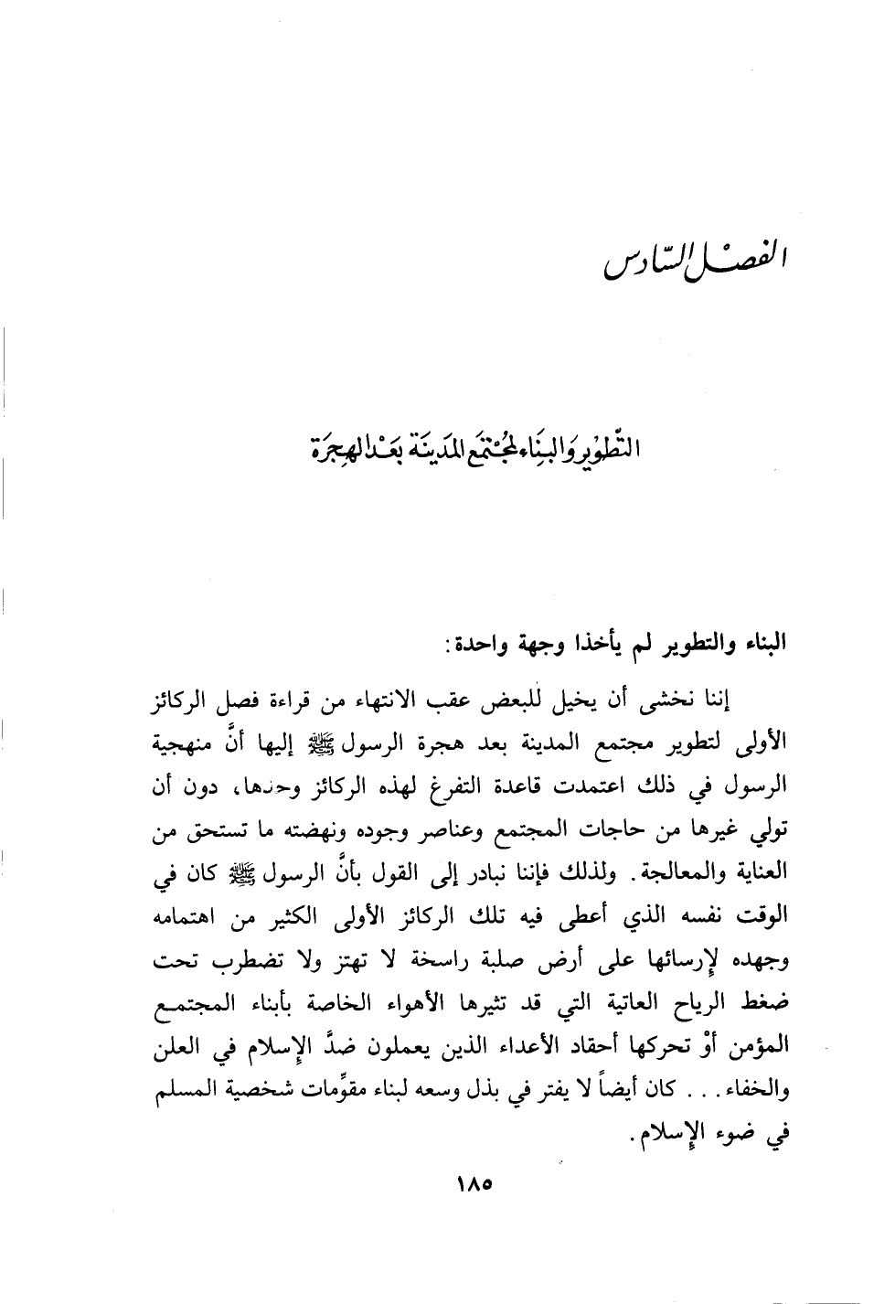 الفصل السادس التطوير والبناء لمجتمع المدينة بعد الهجرة