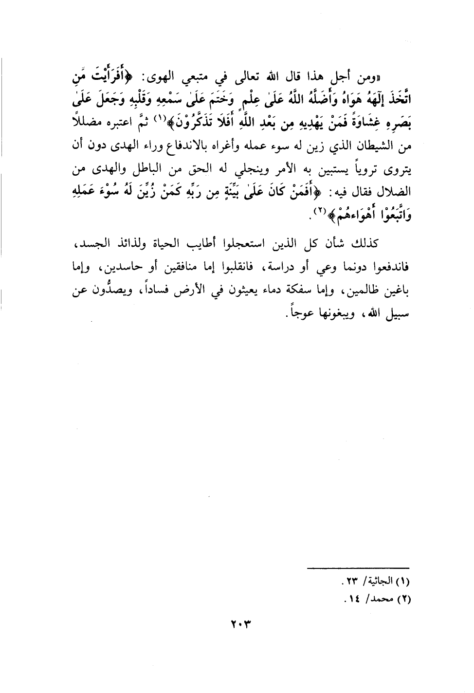 203…" ومن أجل هذا قال الله تعالى في متبعي الهوى: