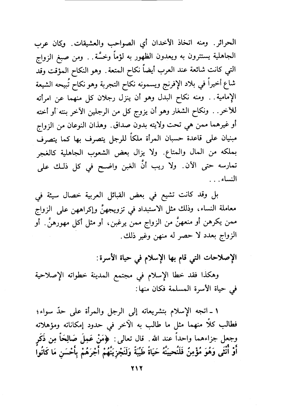 الإصلاحات التي قام بها الإسلام في حياة الأسرة: