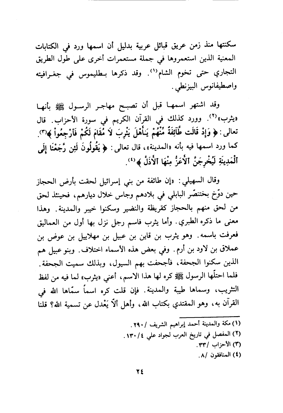 (وإذ قالت طائفة منهم يأهل يثرب لا مقام لكم فارجعوا) (3).