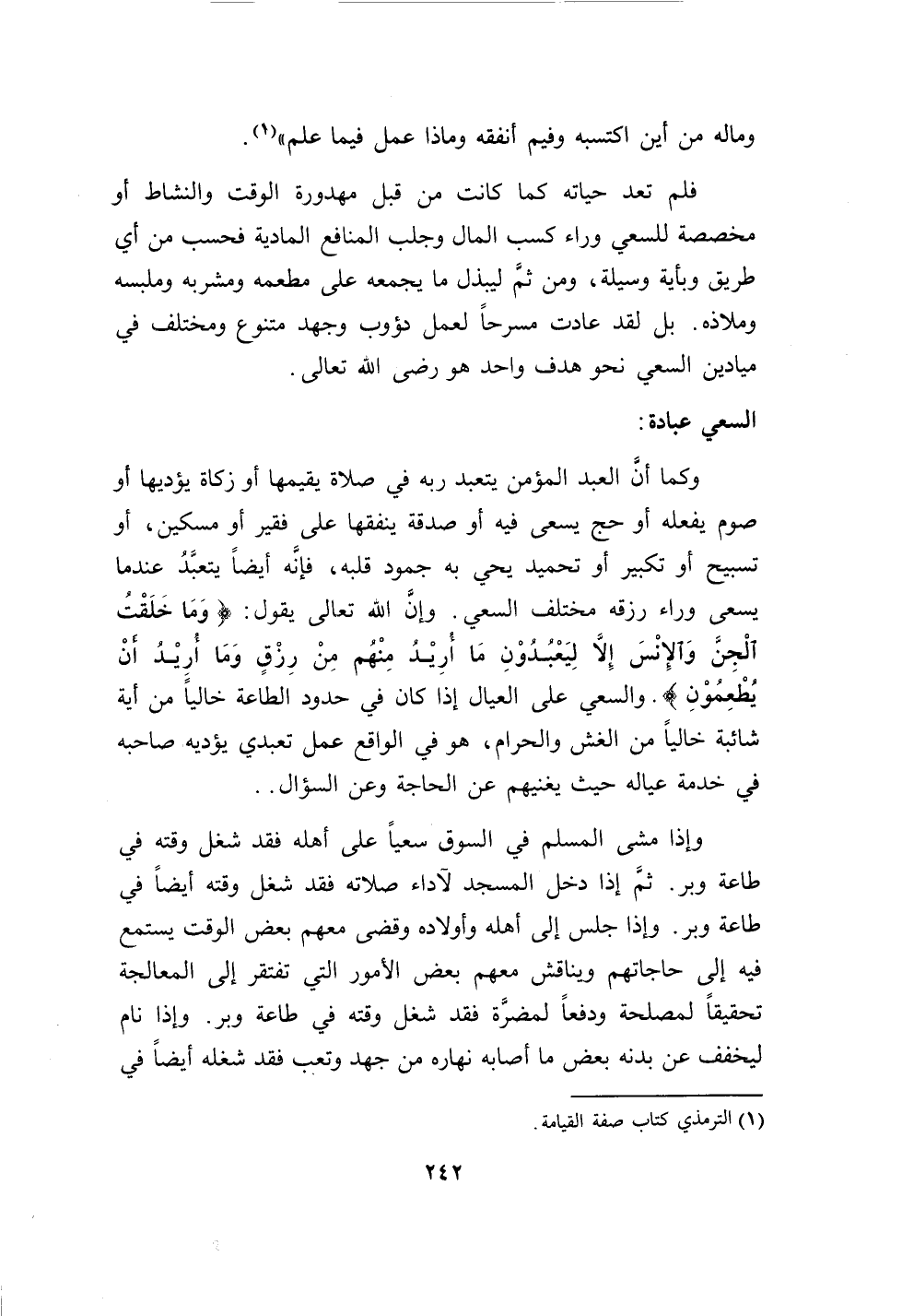 242…وماله من أين اكتسبه وفيم أنفقه وماذا عمل فيما علم " (1).