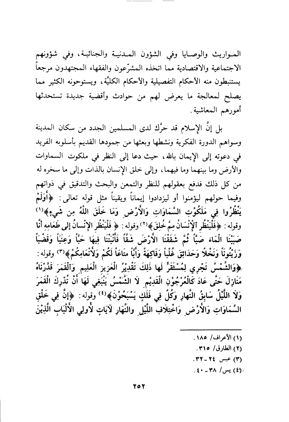 252…المواريث والوصايا وفي الشؤون المدنية والجنائية، وفي شؤونهم الاجتماعية والاقتصادية مما اتخذه المشرعون والفقهاء المجتهدون مرجعاً يستنبطون منه الأحكام التفصيلية والأحكام الكلية، ويستوحونه الكثير مما يصلح لمعالجة ما يعرض لهم من حوادث وأقضية جديدة تستحدثها أمورهم المعاشية.