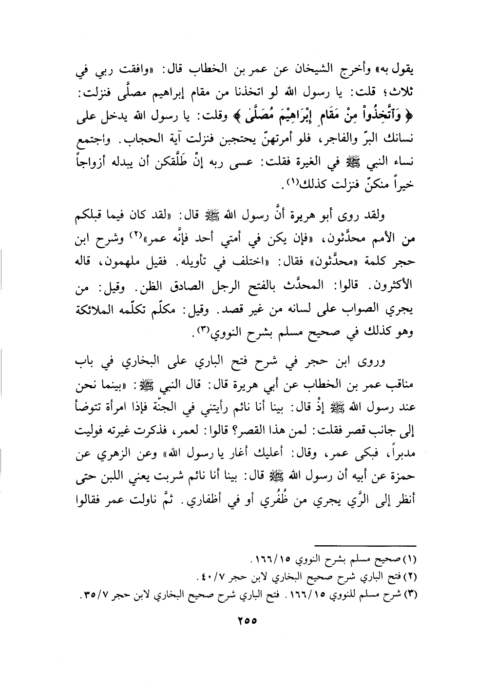 255…يقول به " وأخرج الشيخان عن عمر بن الخطاب قال: " وافقت ربي في ثلاث، قلت: