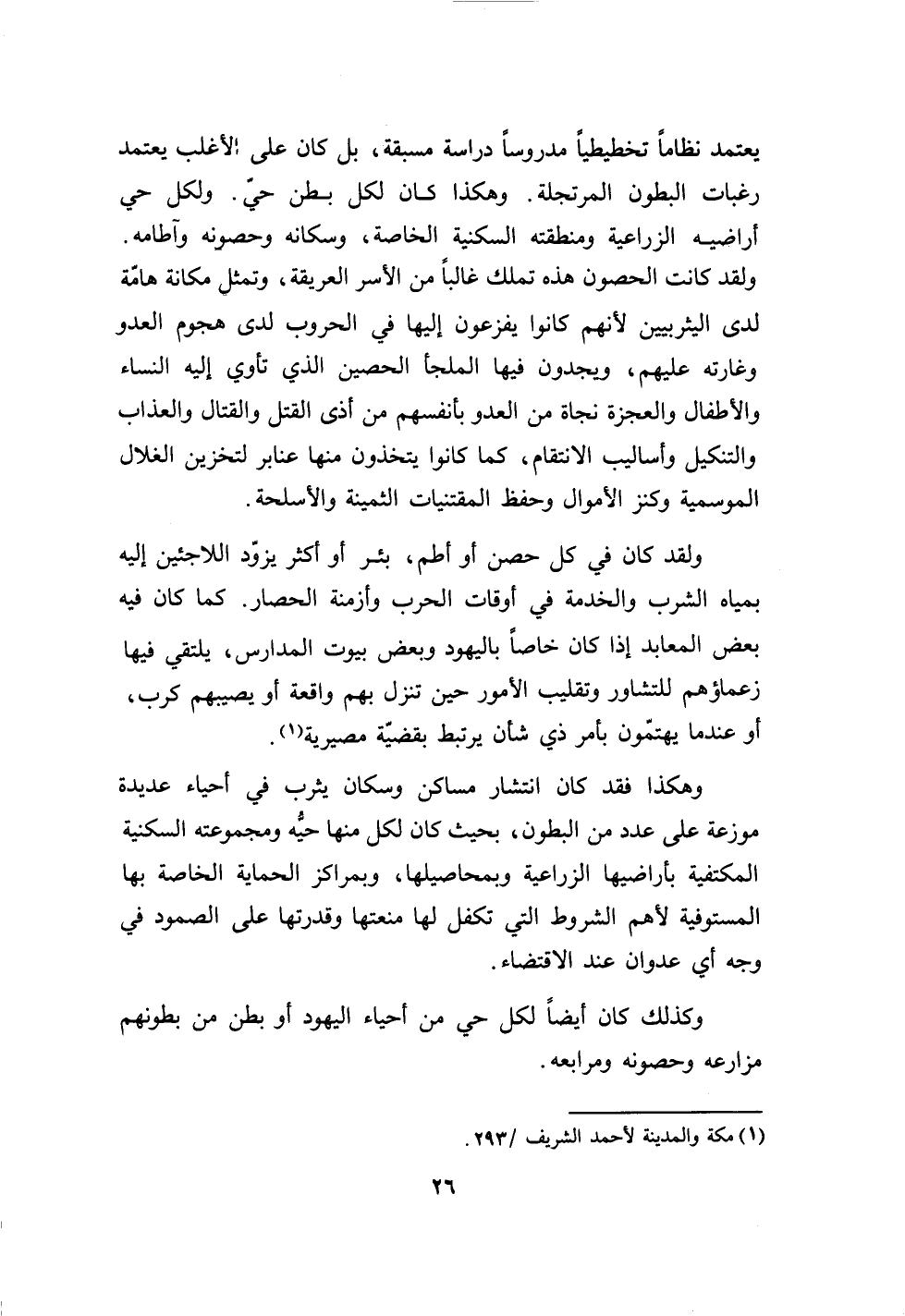 ولكل حي أراضيه الزراعية ومنطقته السكنية الخاصة، وسكانه وحصونه وآطامه.