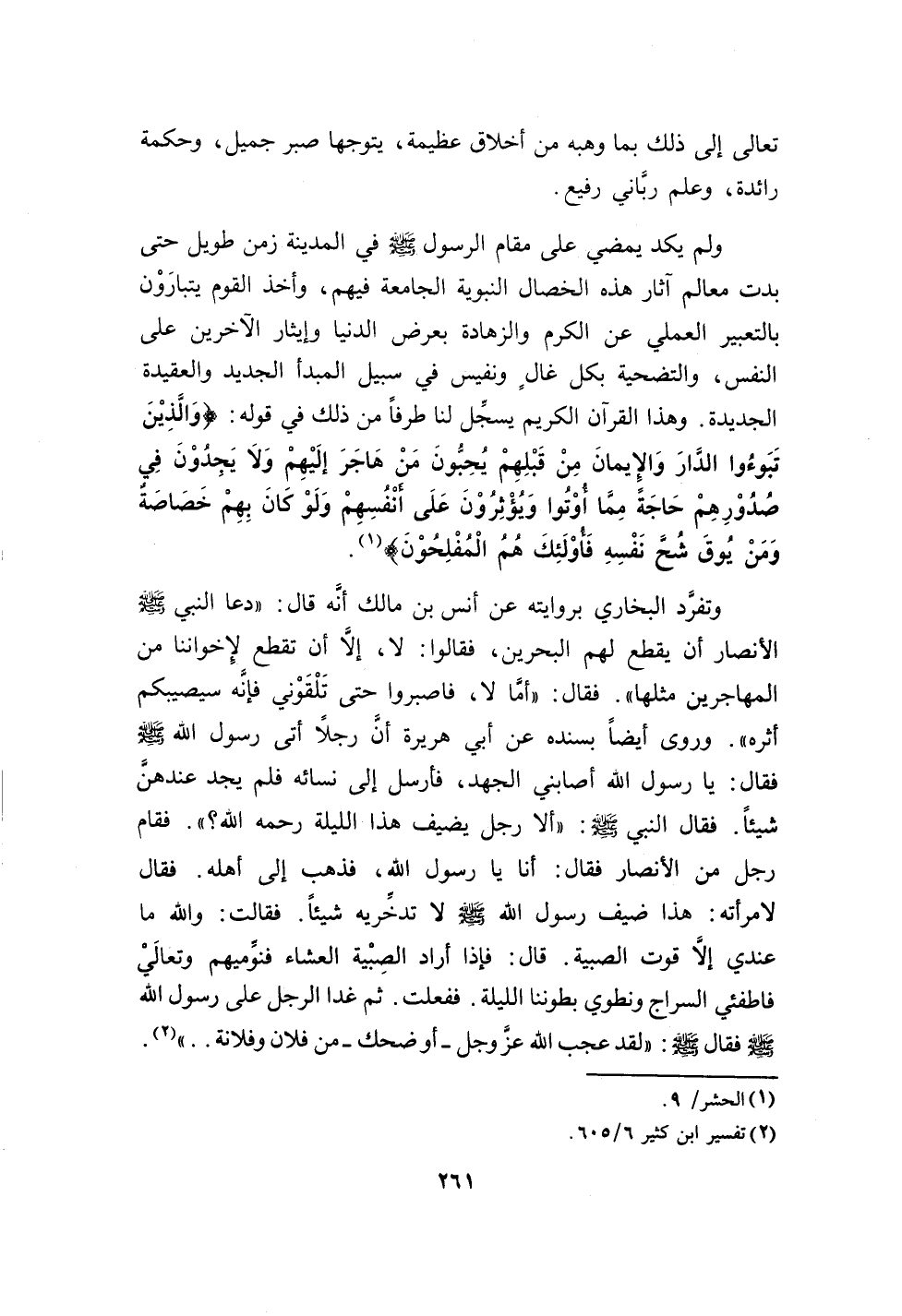 261…تعالى إلى ذلك بما وهبه من أخلاق عظيمة، يتوجها سبر جميل، وحكمة رائدة، وعلم رباني رفيع.