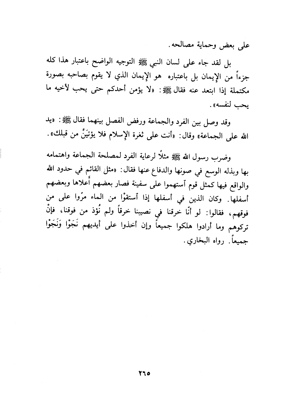 بل لقد جاء على لسان النبي صلى الله عليه وسلم التوجيه الواضح باعتبار هذا كله جزءاً منالإيمان بل باعتباره هو الإيمان الذي لا يقوم بصاحبه بصورة مكتملة إذا ابتعد عنه فقال صلى الله عليه وسلم: