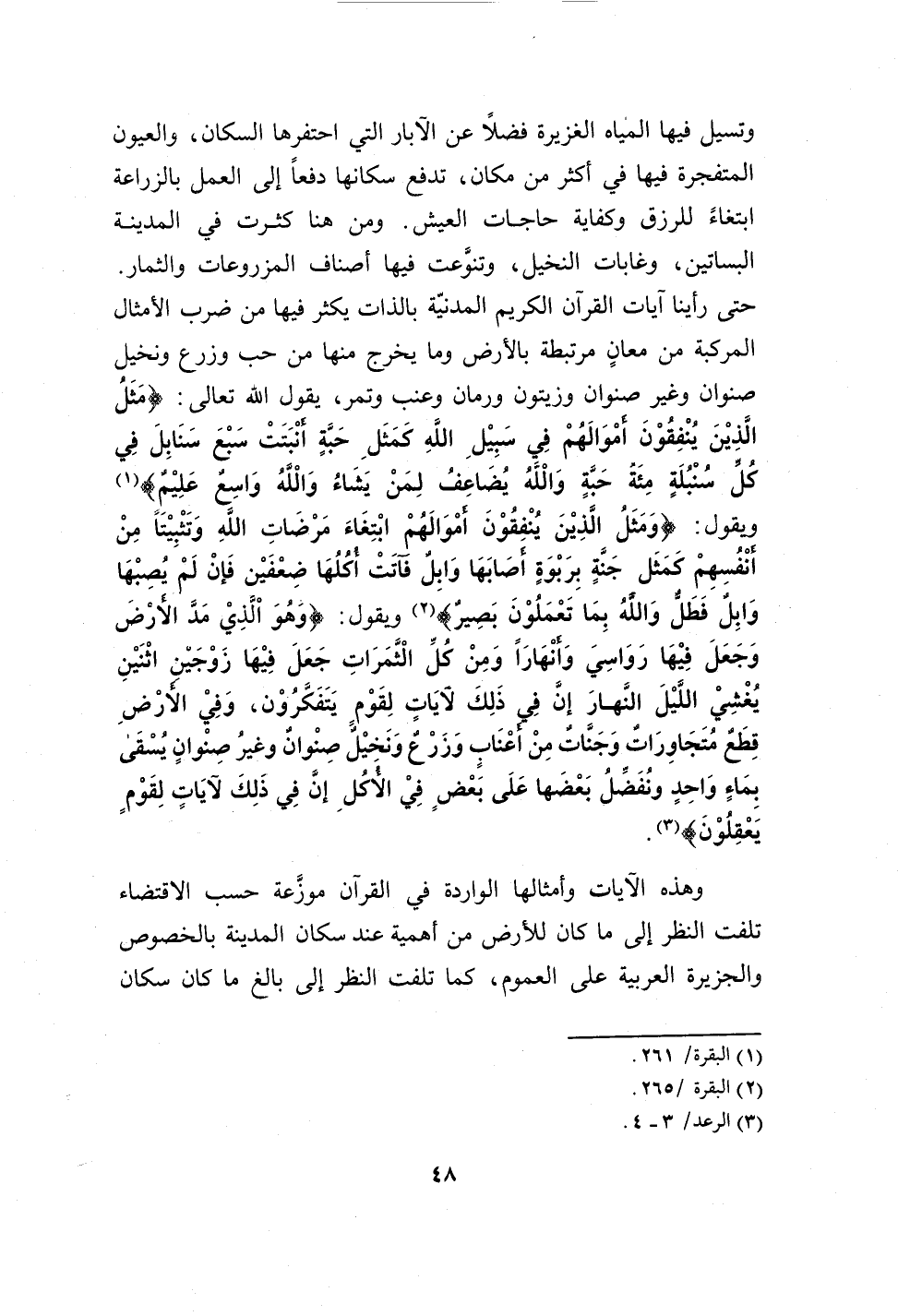 وهذه الآيات وأمثالها الواردة في القرآن موزعة حسب الاقتضاء تلفت النظر إلى ما كان للأرض من أهمية عند سكان المدينة بالخصوص والجزيرة العربية على العموم، كما تلفت النظر إلى بالغ ما كان سكان…