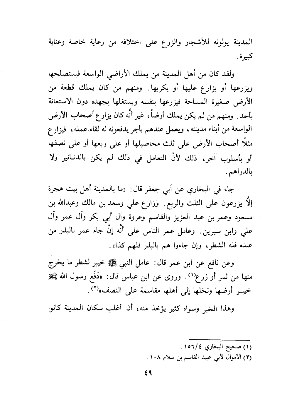 ولقد كان من أهل المدينة من يملك الأراضي الواسعة فيستصلحها ويزرعها أو يزارع عليها أو يكريها.