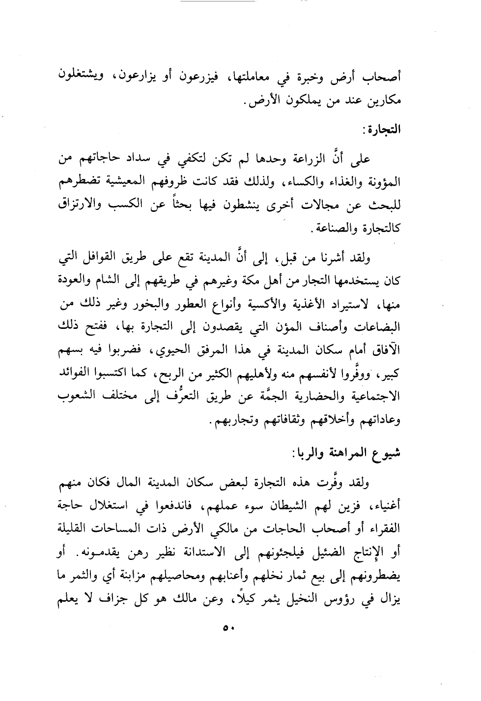 ولقد وفرت هذه التجارة لبعض سكان المدينة المال فكان منهم أغنياء، فزين لهم الشيطان سوء عملهم، فاندفعوا في استغلال حاجة الفقراء أو أصحاب الحاجات من مالكي الأرض ذات المساحات القليلة أو الإنتاج الضئيل فيلجئونهم إلى الإستدانة نظير رهن يقدمونه.