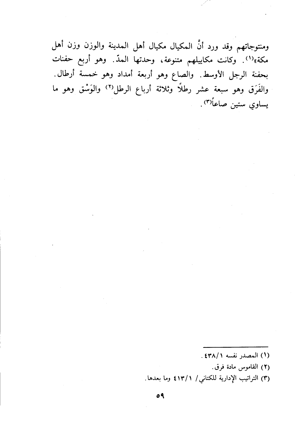 59…ومنتوجاتهم وقد ورد أن المكيال مكيال أهل المدينة والوزن وزن أهل مكة" (1).