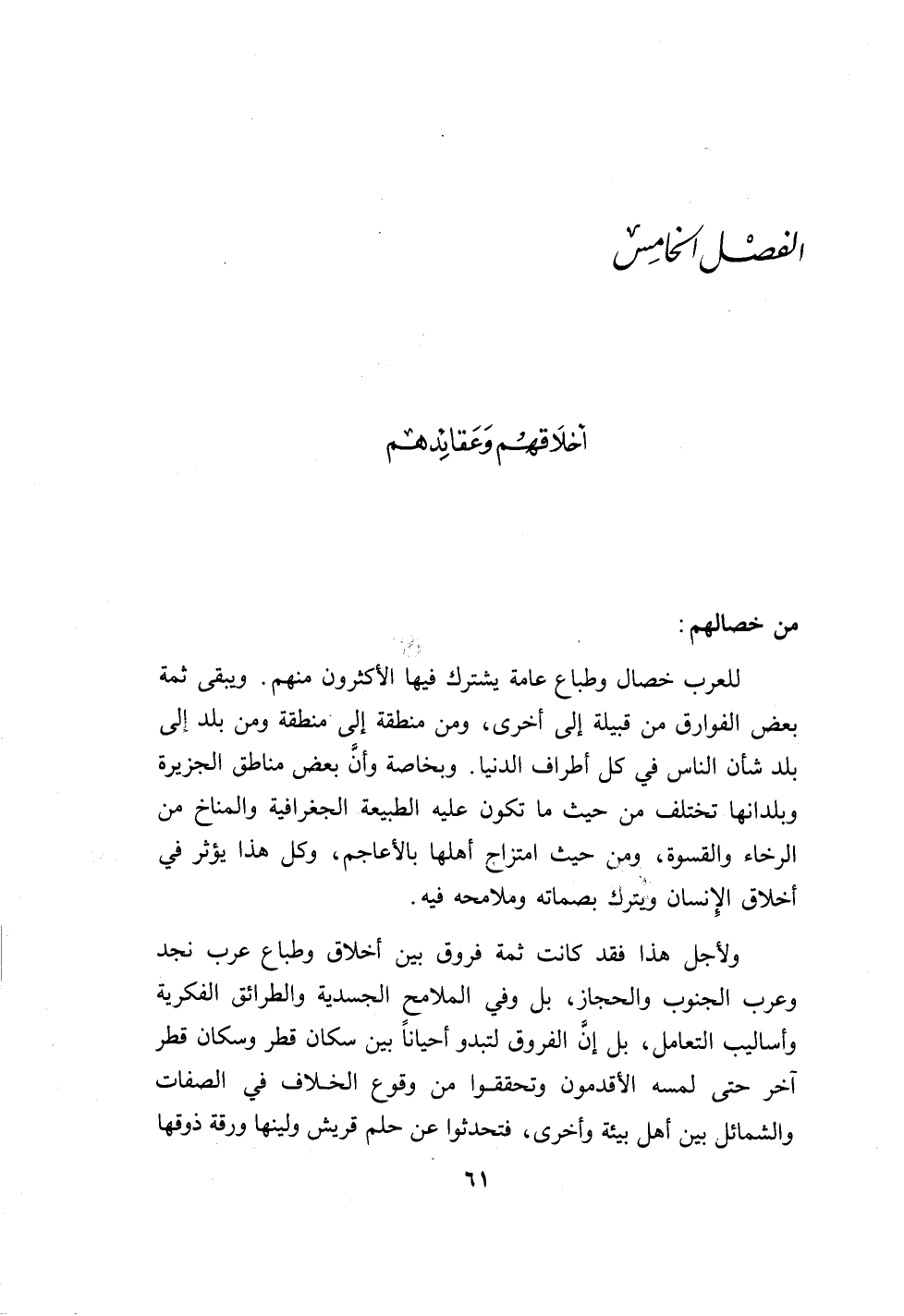 للعرب خصال وطباع عامة يشترك فيها الأكثرون منهم.