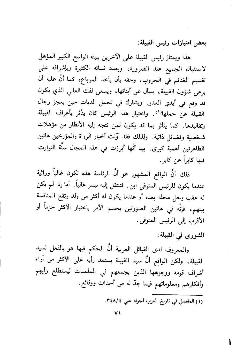 ذلك أن الواقع المشهور هو أن الرئاسة هذه تكون غالباً وراثية عندما يكون للرئيس المتوفى ابن.