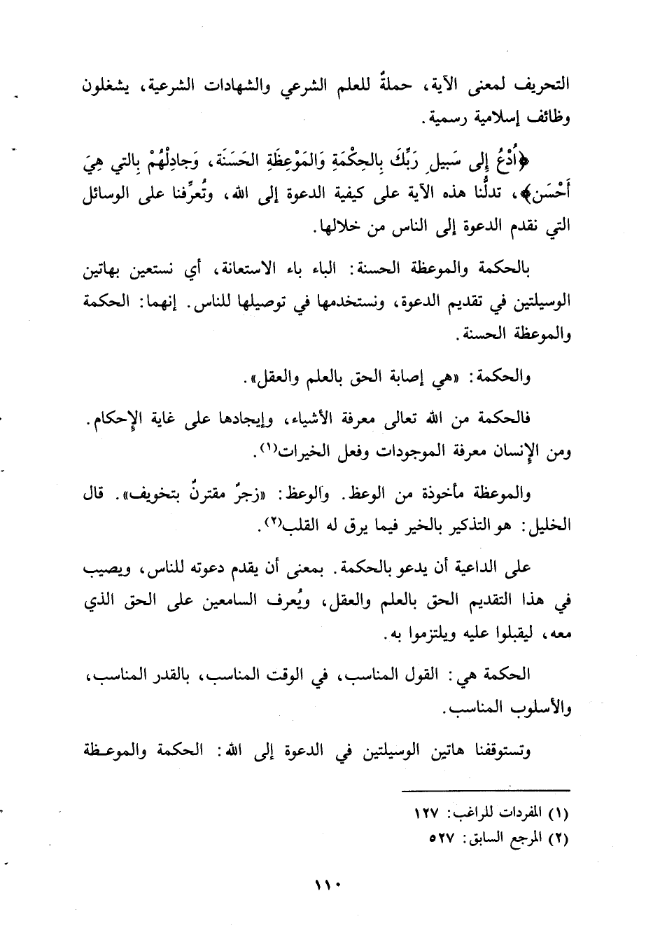 {ادْعُ إِلَى سَبِيلِ رَبِّكَ بِالْحِكْمَةِ وَالْمَوْعِظَةِ الْحَسَنَةِ وَجَادِلْهُمْ بِالَّتِي هِيَ أَحْسَنُ}، تدلُّنا هذه الآية على كيفية الدعوة إلى الله، وتُعرِّفنا على الوسائل التي نقدم الدعوة إلى الناس من خلالها.