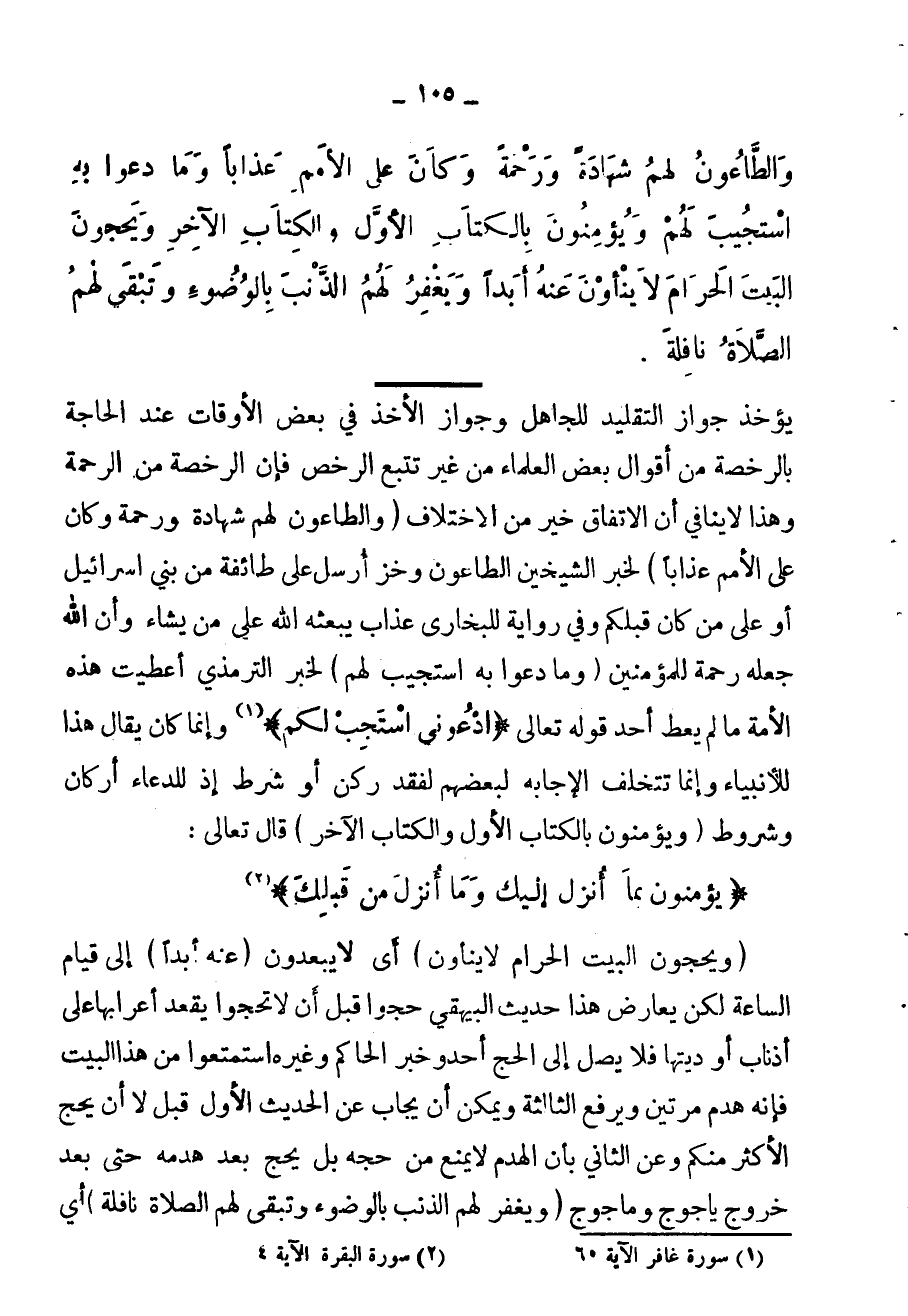 ويؤمنون بالكتاب الأول، والكتاب الآخر، ويحجون البيت الحرام لا ينأون عنه أبداً، ويغفر لهم الذنب بالوضوء، وتبقى الصلاة لهم نافلة،