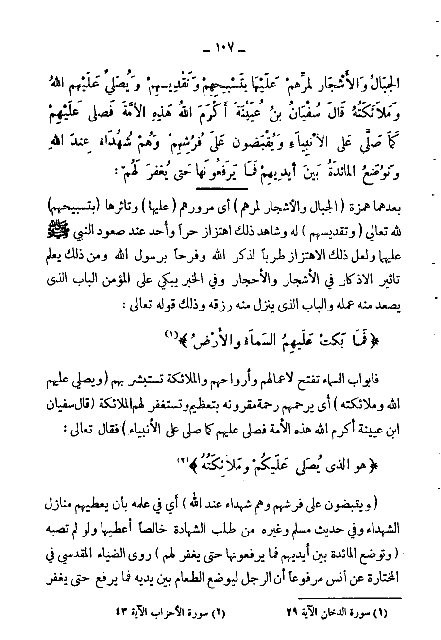 قال سفيان بن عيينة: أكرم الله أمة محمد صلى الله عليه وآله وسلم فصلى عليهم كما صلى على الأنبياء فقال: (هو الذي يصلي عليكم وملائكته) .