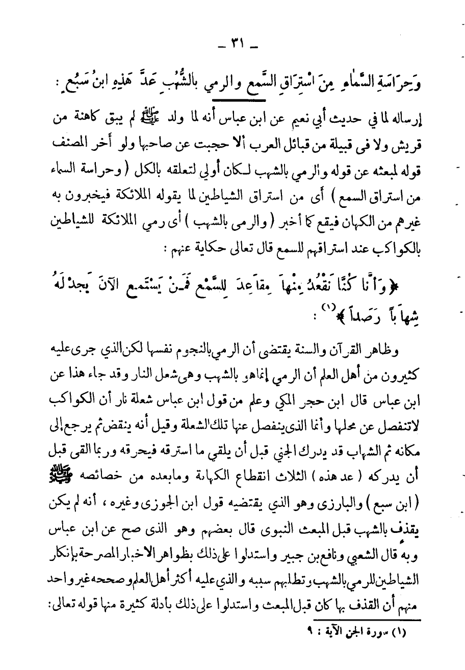 وحراسة السماء من استراق السمع، والرمي بالشهب، عدّ هذه "ابن سبع".