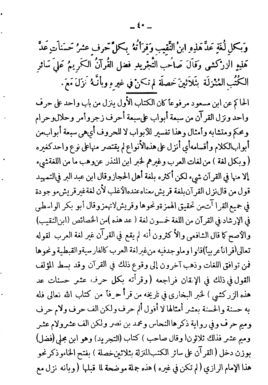 وقال صاحب التحرير: فُضِّل القرآن على سائر الكتب المنزلة بثلاثين خصلة لم تكن في غيره.