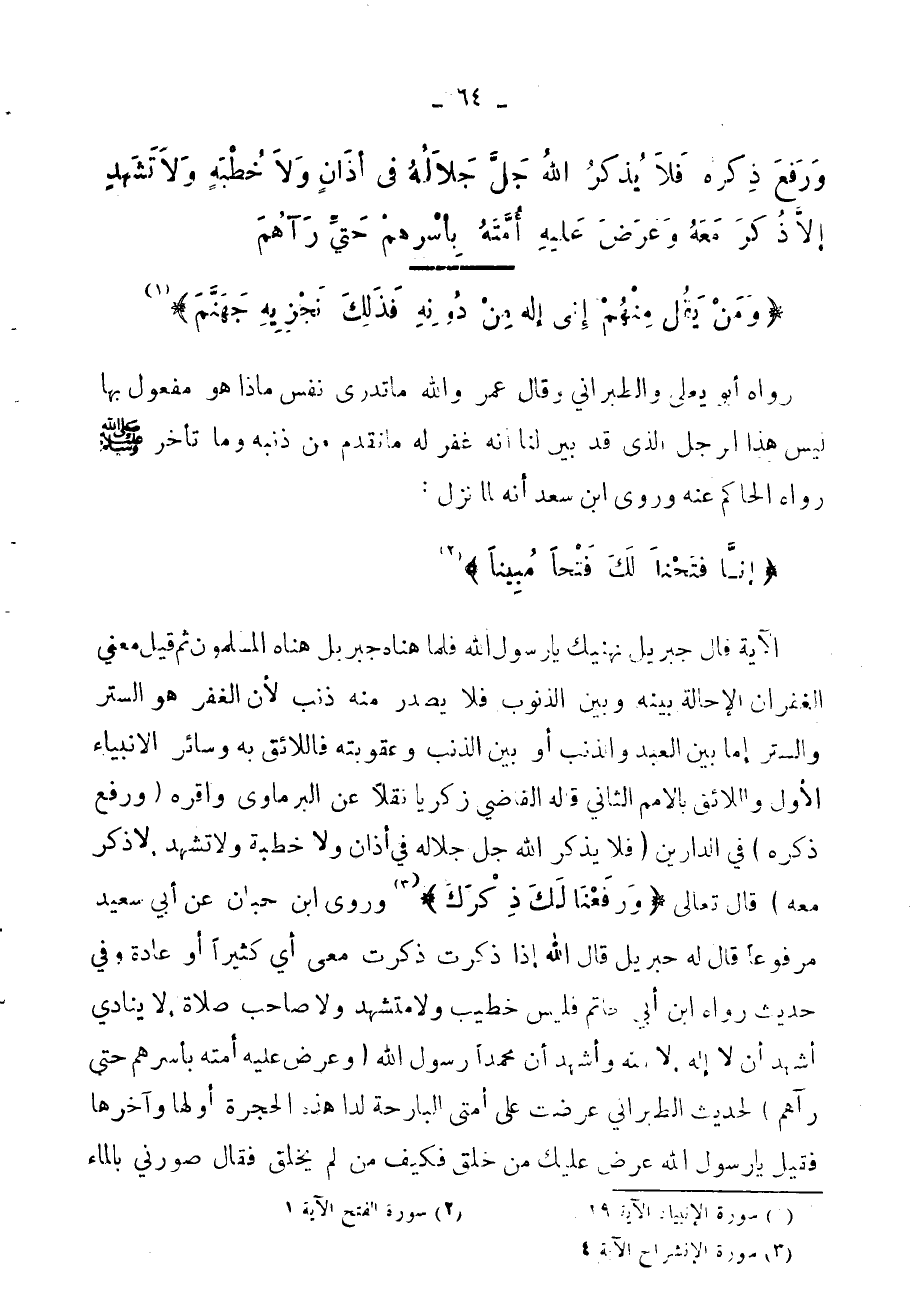 ورُفِع ذِكره، فلا يذكر الله جل جلاله في أذان ولا خطبة ولا تشهد إلا ذُكِر معه.