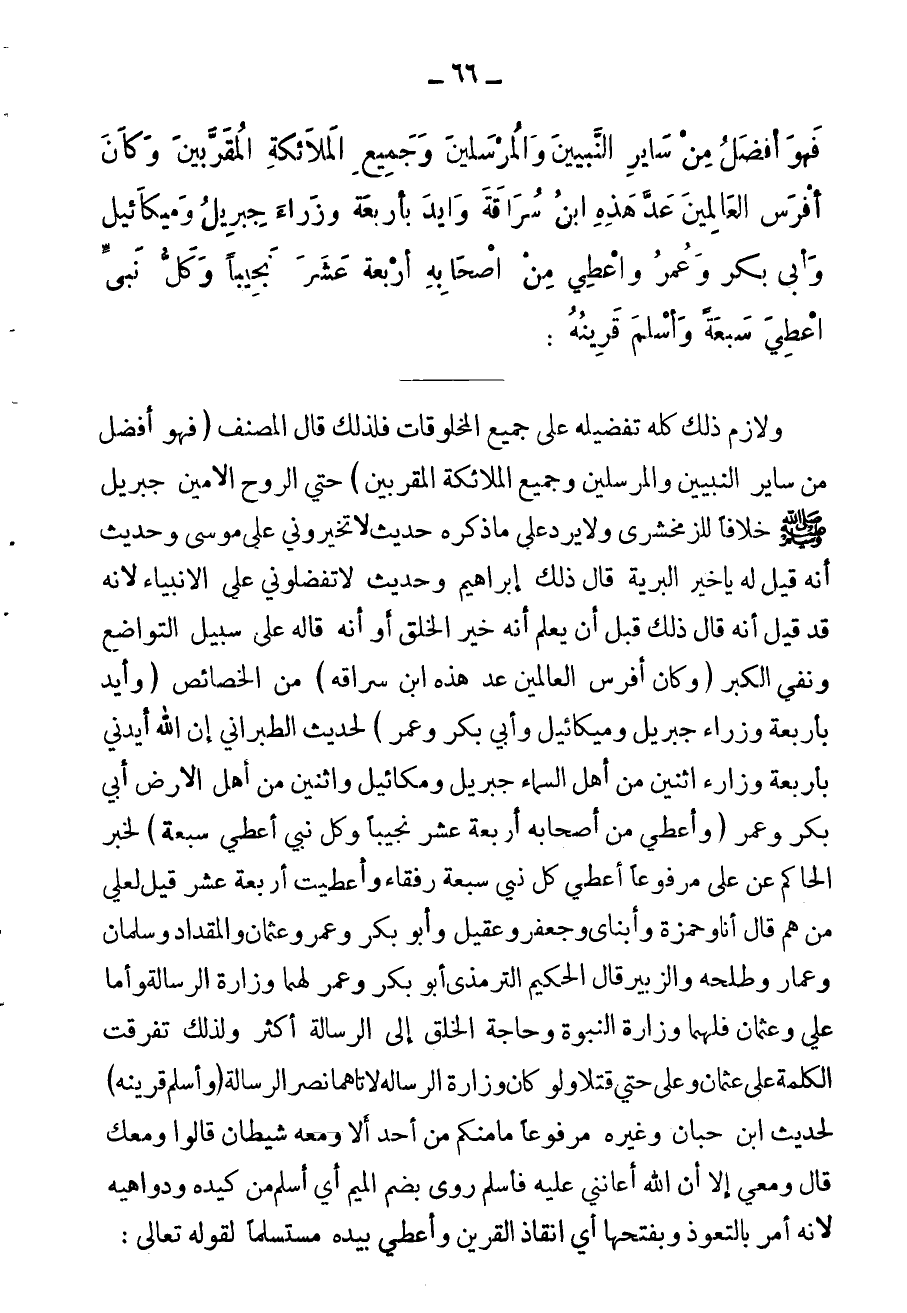 وأفضل من سائر المرسلين وجميع الملائكة المقربين، وكان أفرسَ العالمين، عدَّ هذه "ابن سراقة".